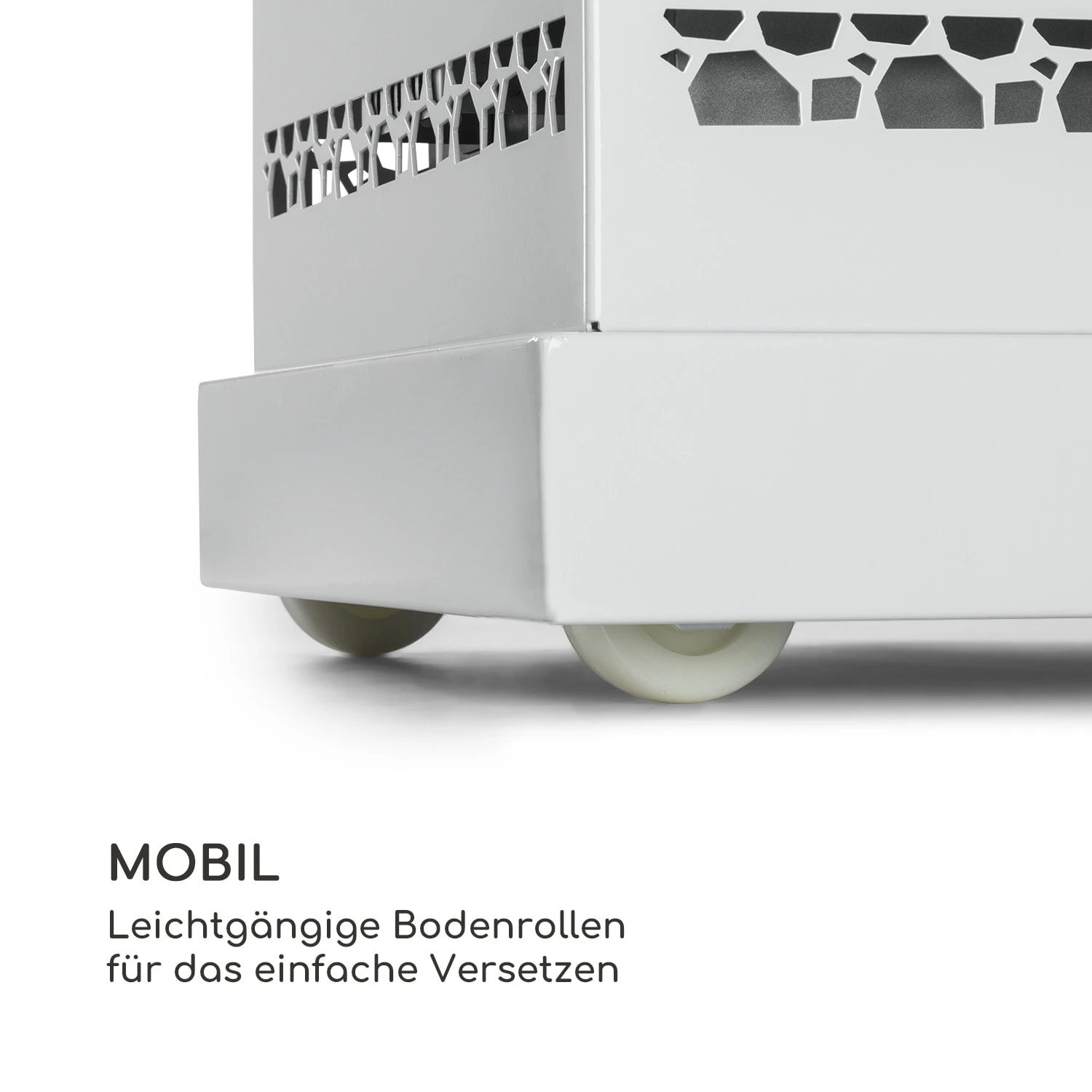 Der blumfeldt Heat Hunter Pellet-Heizpilz erzeugt besonders energieeffiziente Wärme und ist mit einem CO²-Anteil von nur 4,7 % sogar CO²-neutral. Darüber hinaus sind Pellets im Vergleich zu anderen Energieträgern, wie Flüssiggas und Erdgas kostengünstiger und schonen dank PelletEnergy nicht nur die Umwelt, sondern auch den Geldbeutel. Mit zwei leichtgängigen Bodenrollen kann der Heat Hunter zudem einfach transportiert und versetzt werden, während ein stabiles Sicherheitsgitter den Glaszylinder vor ungewolltem Zugriff abschirmt. Die korrosionsbeständige Bauweise aus Edelstahl macht das Gerät besonders langlebig und für die Aufstellung in Außenbereichen geeignet. Für ein sicheres Heizerlebnis werden dem Lieferumfang ein Paar Schlüssel zum praktischen Verschließen der Heizklappe sowie Sicherheitshandschuhe für ein sicheres Entleeren des Pelletbehälters beigelegt.