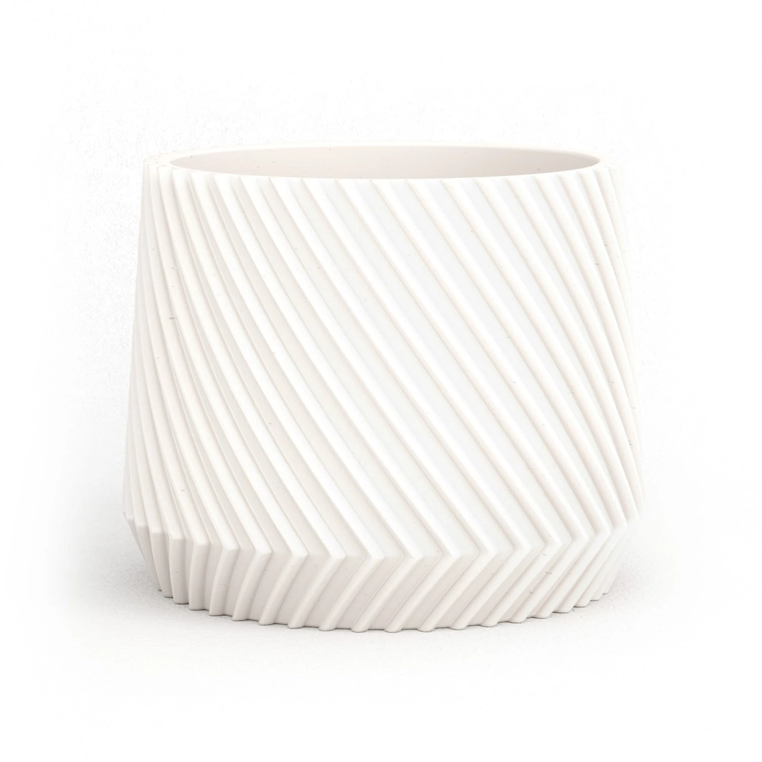 Ob drinnen oder draußen – deine Pflanzen- und Blütenpracht wird dank diesem außergewöhnlichen Blumentopf wundervoll inszeniert und ideal bewässert. Durch die asymmetrisch verlaufende Linien-Struktur ergibt sich ein geometrisches Muster in 3D-Optik, welches alle Blicke auf sich zieht. In seiner Form läuft der Topf nach oben hin konisch zu.