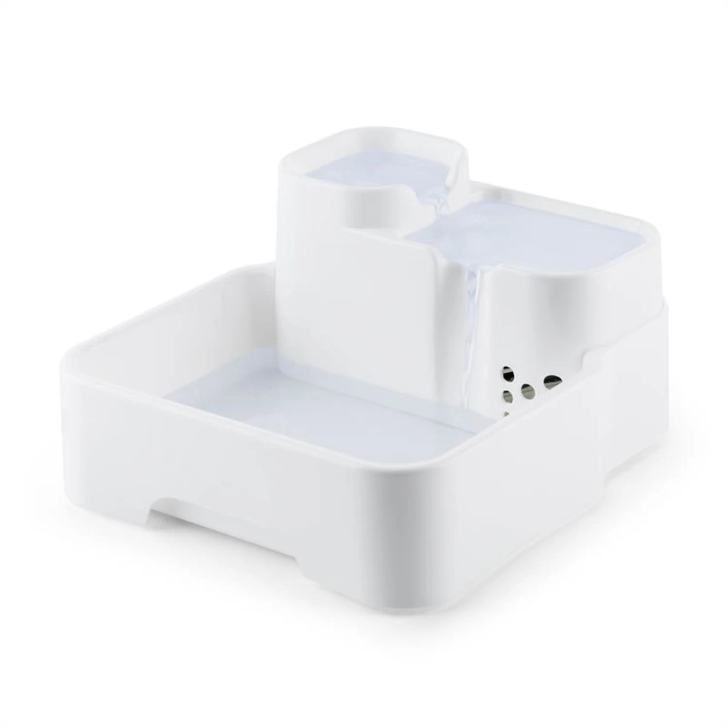 Der oneConcept Lake Lassie Tierbrunnen lässt keine Hunde- oder Katzenkehle trocken. 4 Liter Wasser passen in den Trinkbrunnen und versorgen so ihr Tier jederzeit mit der nötigen Flüssigkeit ohne ständiges Neubefüllen der Trinkschale. Zum bequemen Trinken für kleine, mittlere und große Tiere verfügt die Tränke über drei unterschiedlich hohe Becken. Eine integrierte 2 W Pumpe befördert dabei das Wasser in das höchste Becken, von wo es durch Überläufe wieder nach unten fließt. Ein integrierter Aktivkohlefilter reinigt das Wasser während des Umlaufs und hält es den ganzen Tag lang sauber und frisch.