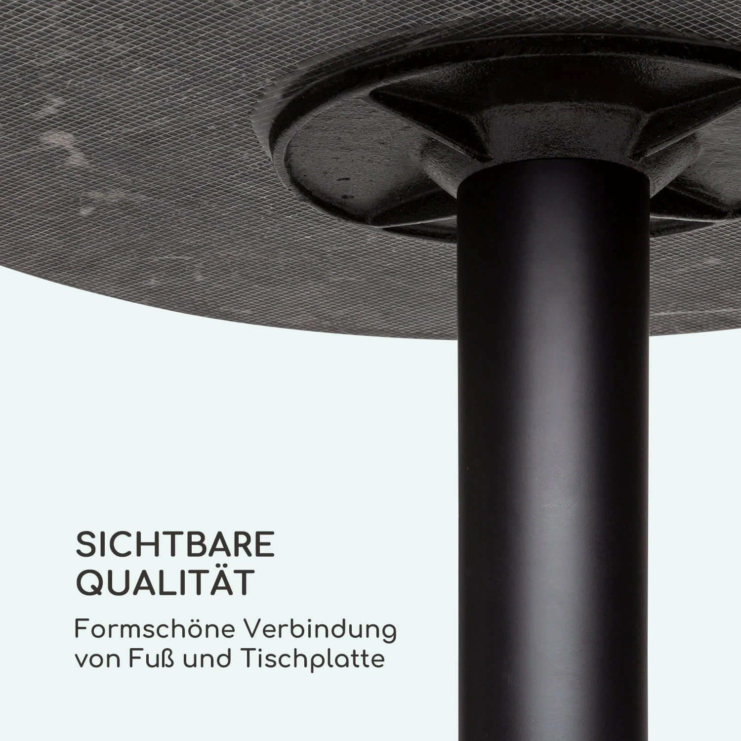 Luxuriöser Genuss mit Jugendstil-Atmosphäre – das verspricht dir der blumfeldt Patras Pearl Gartentisch und zieht dabei alle Register: Die 60 cm durchmessende Tischplatte ist aus sauber poliertem, echtem Marmor. So ist dieser Tisch ein Unikat – denn Maserung und Färbung des Gesteins bringen immer wieder einen ganz eigenen Charakter hervor und verleihen jedem Umfeld neuen Glanz. Diese prachtvolle Erscheinung wird durch den stabilen gusseisernen Standfuß mit Verzierungen zusätzlich verstärkt. Egal ob für das Frühstück auf dem Balkon, zum geselligen Kaffee auf der Terrasse oder das romantische Candle-Light-Dinner unterm Sternenhimmel: Der blumfeldt Patras Pearl Marmortisch sorgt für ein außergewöhnliches Ambiente.
