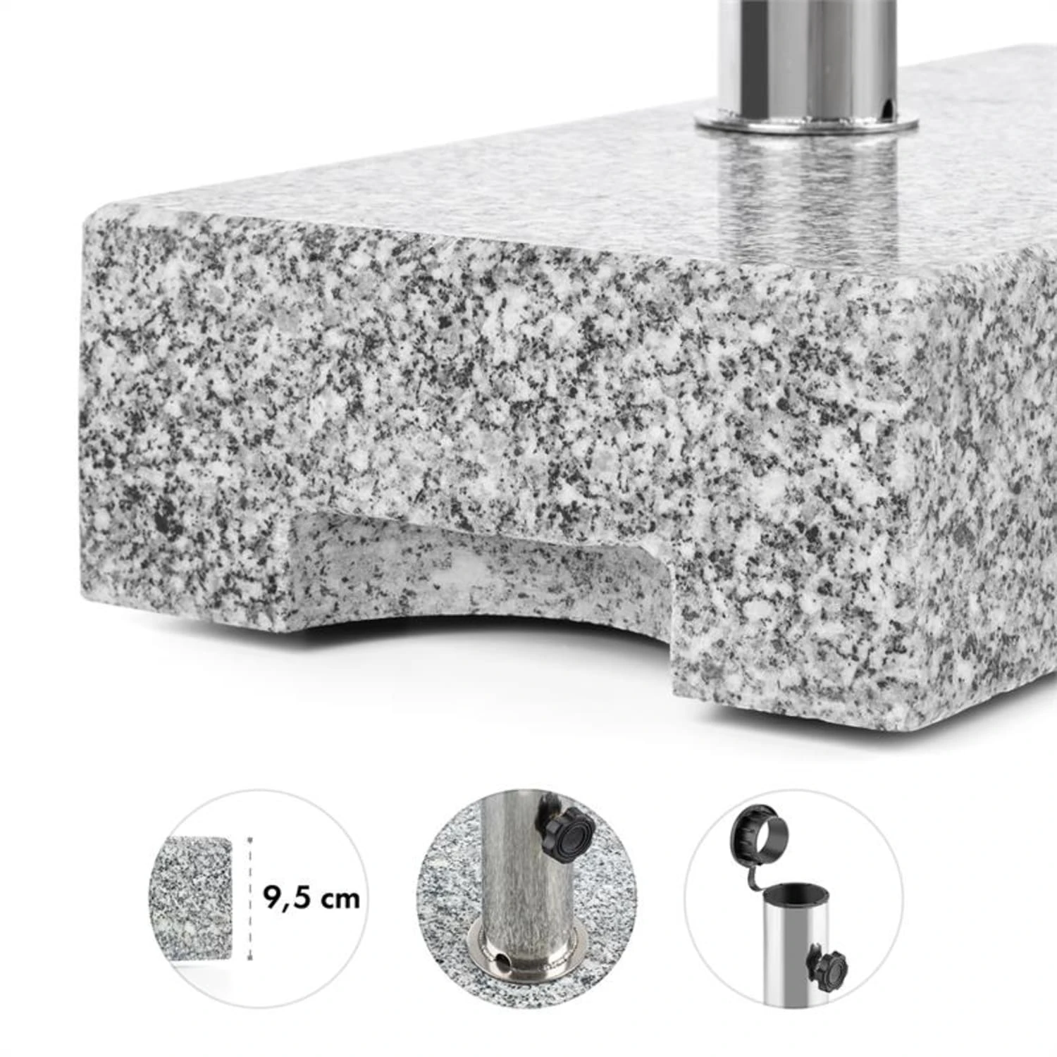 Der Fels in der Sonne! Der massive Schirmherr 25HSQ Granit-Schirmständer von Blumfeldt hat Ihren Sonnenschirm bei jeder Wetterlage fest im Griff.